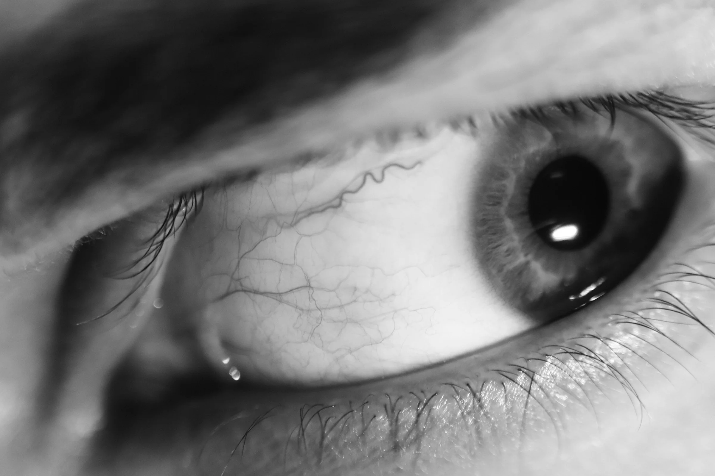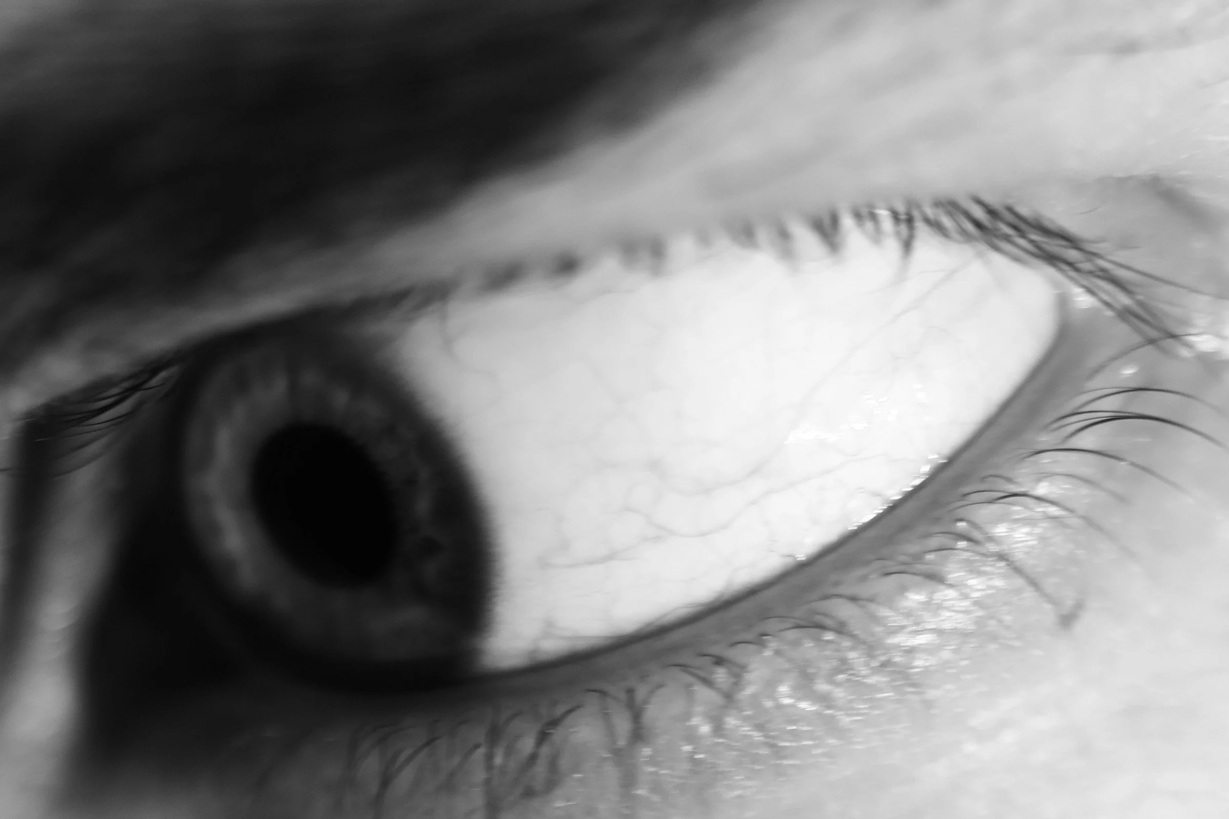 This picture was made from a combination of two. The goal was to create an eye with no pupil, to achieve this I took two pictures of me looking in opposing direction and then combined them by layering one over the other and lightly stretching the veins to create a neer seamless combination. Sharpness was then applied in order to bring out more details in the veins.